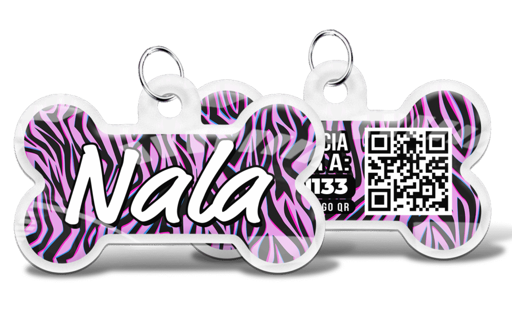 Plaquita de Identificación QR Personalizable para Mascotas Mantén a tu mascota segura con nuestra plaquita de huesito personalizable. Incluye un perfil digital con QR único donde almacenas toda su información vital y contactos de emergencia. Si se pierde, quien la encuentre podrá contactarte al instante. ¡Es la tranquilidad que mereces en un diseño que amarán!