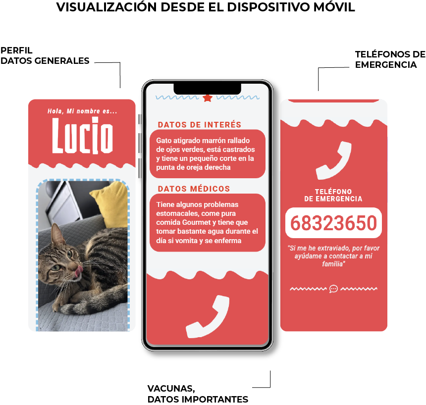 2. Llena su Información Vital: Aquí es donde subes su foto, añades su raza, edad, historial médico, tu contacto de emergencia y cualquier información clave que ayude a encontrarla.