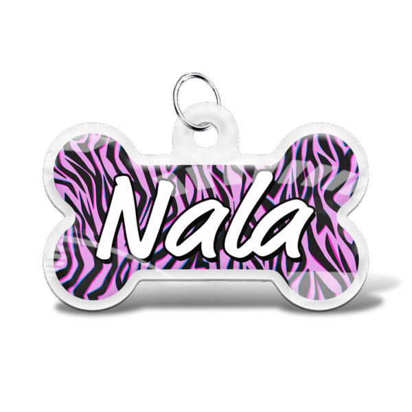 El frente de la plaquita es para lucir. Personaliza el diseño con el nombre de tu mascota para un estilo vibrante y claro que todos puedan ver. Es el balance perfecto entre moda y función.